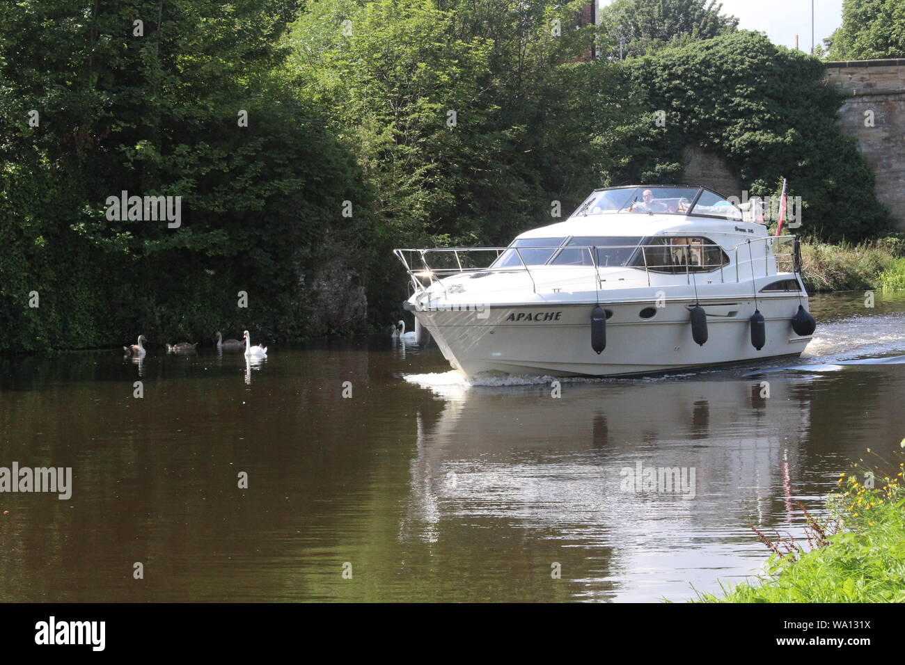 Pleasure Cruiser Boat Cruising Along The Aire And Calder Navigation A Canal In Knottingley West Yorkshire In Britain Uk Stock Photo Alamy